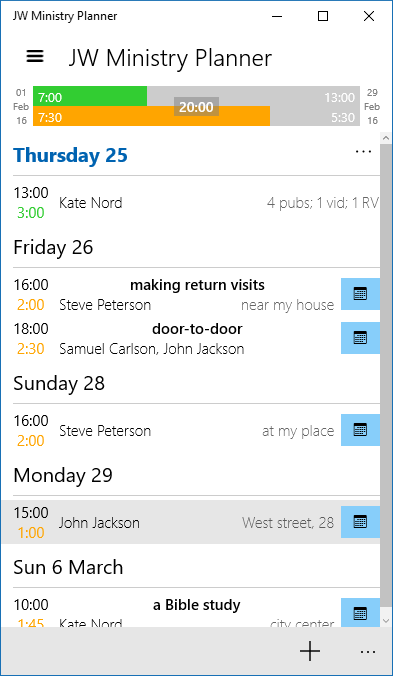 Ministry Planner is an app for Jehovah's Witnesses' field service. (from the developer of NWT Bible Reader app for Windows)